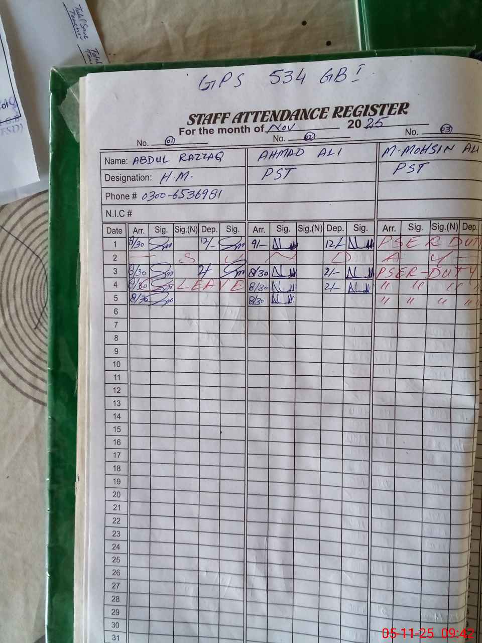 | Name: AB**** RA**** Designation: (School Headmaster's/Headmistress's) PST Phone/Cell Number: 03**** |
