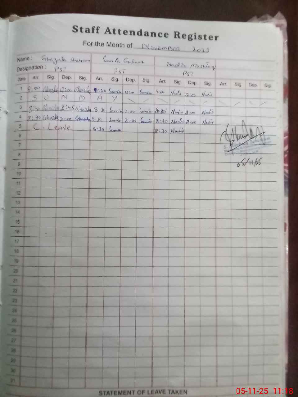 | Remarks (Use Separate Page if Required): HT Imtiaz Bi is on CL today Available teachers do not have updated record of NSB 02 In no Class rooms are dangerous in condition | |||||
