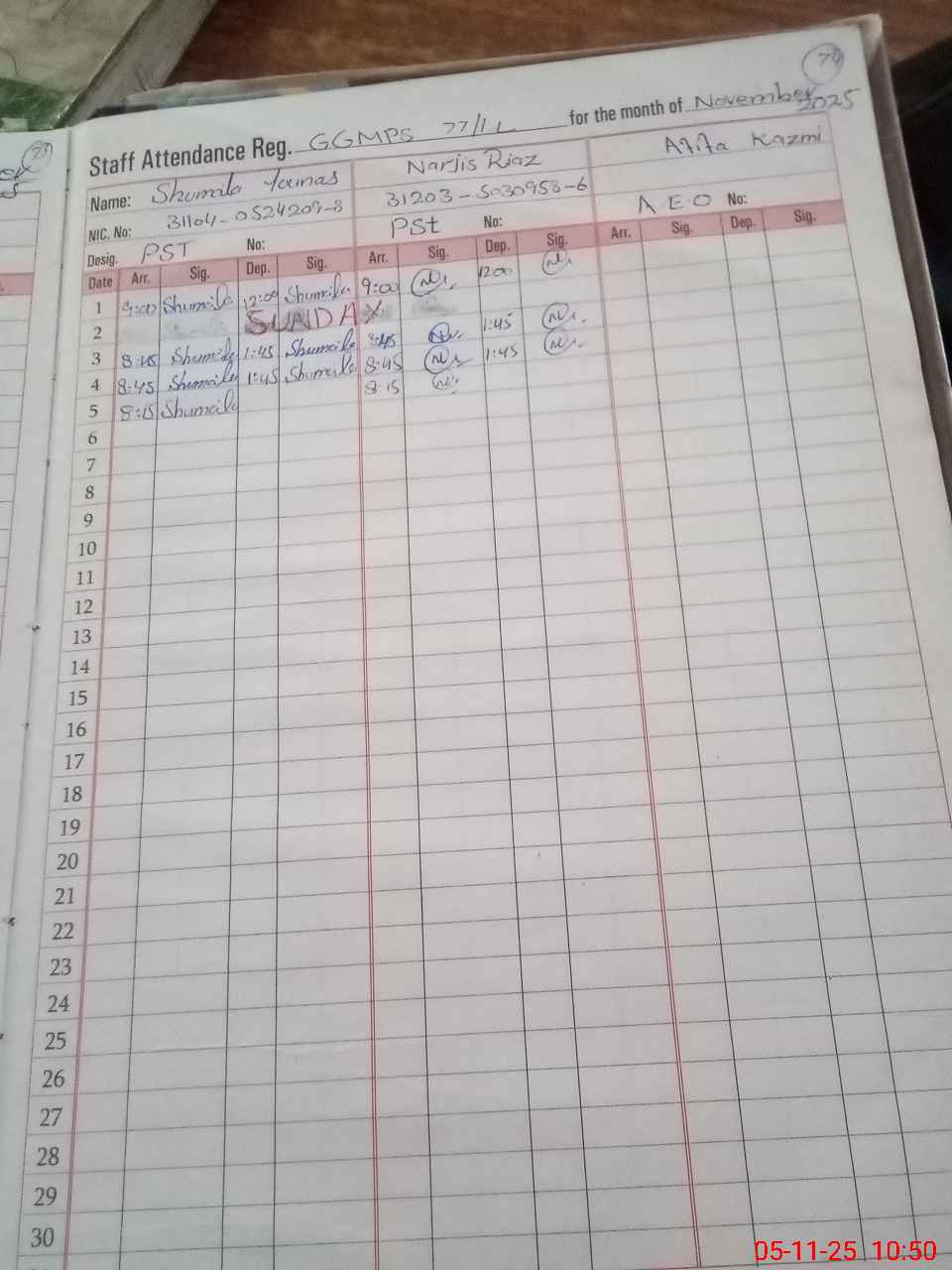 | Remarks (Use Separate Page if Required): Sti areej shoukat is present in school | |||||