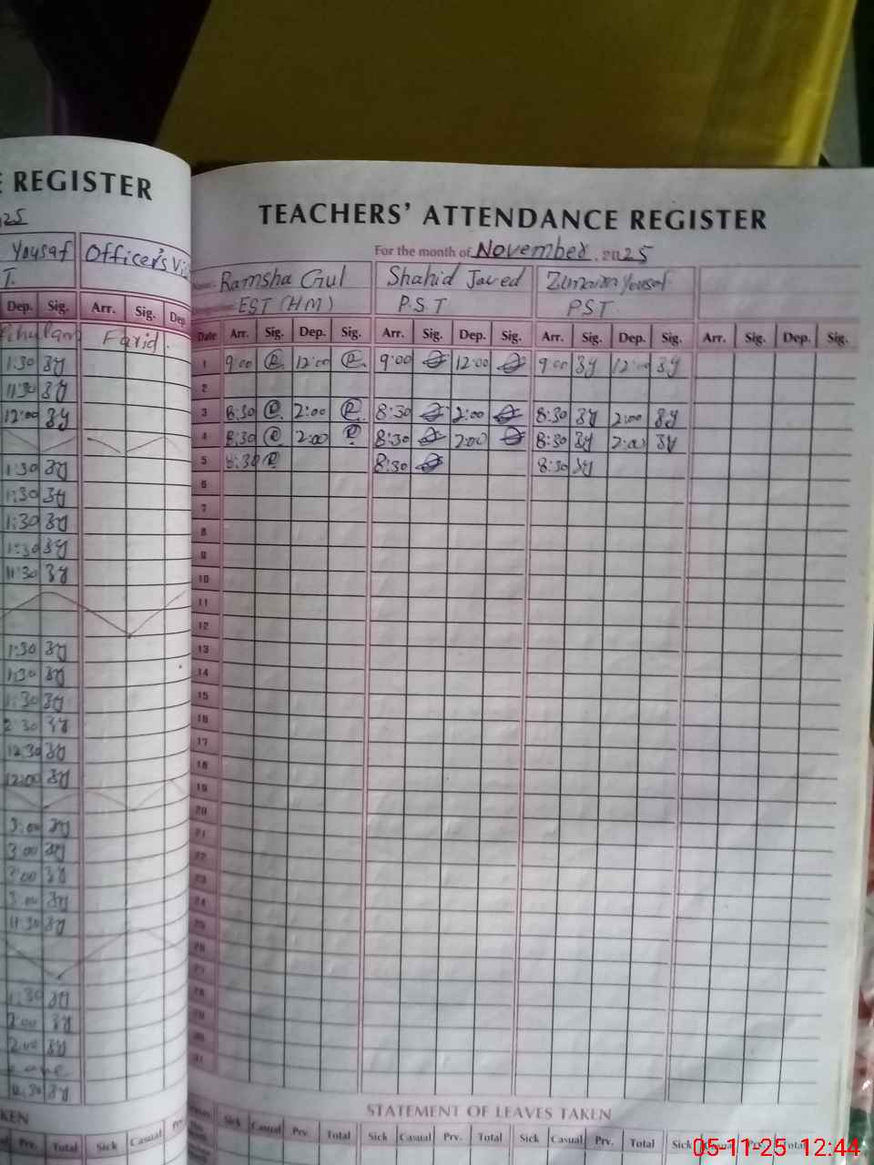 | CNIC | Full Name | Designation | R/C | Absence During Last Calender Month |