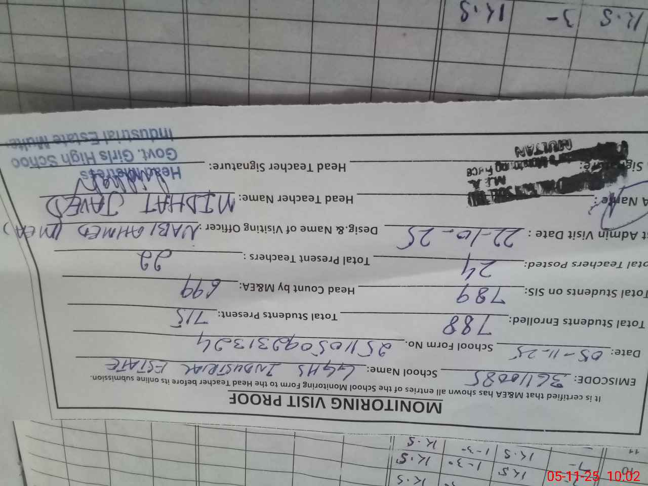 | Certified that this School was Inspected by the Undersigned MEA/DMO Today and the Information Stated Above is as Per Record. | |||||