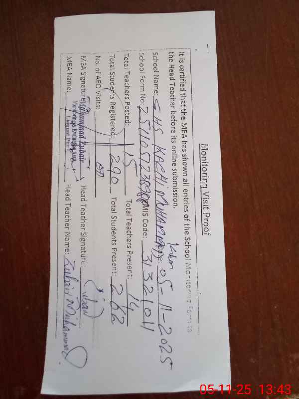 | EMIS Code: 31321011 | Name of School: GHS KACHI MUHAMMAD KHAN | |||