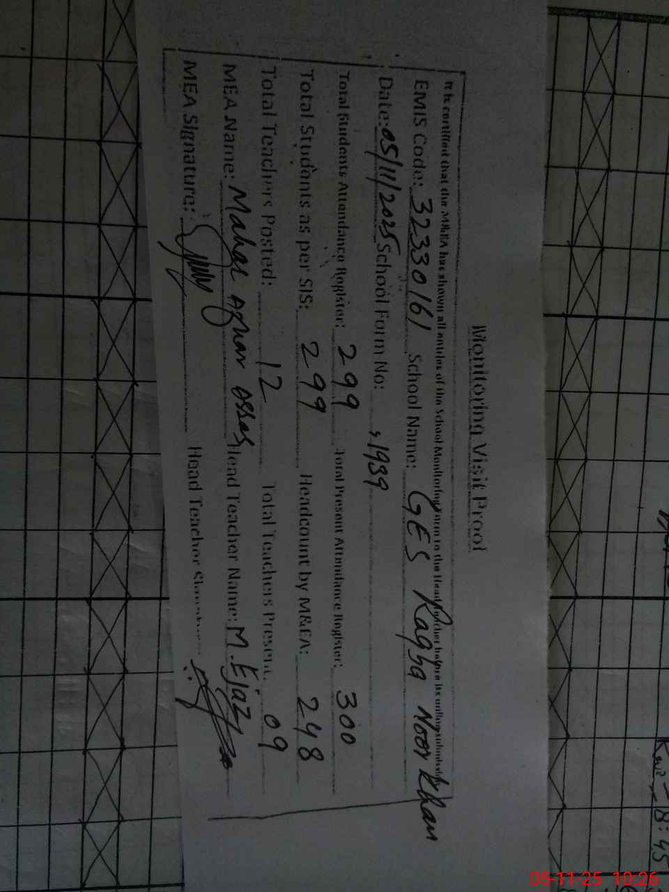 | EMIS Code: 32330161 | Name of School: GES RAQBA NOOR KHAN | |||