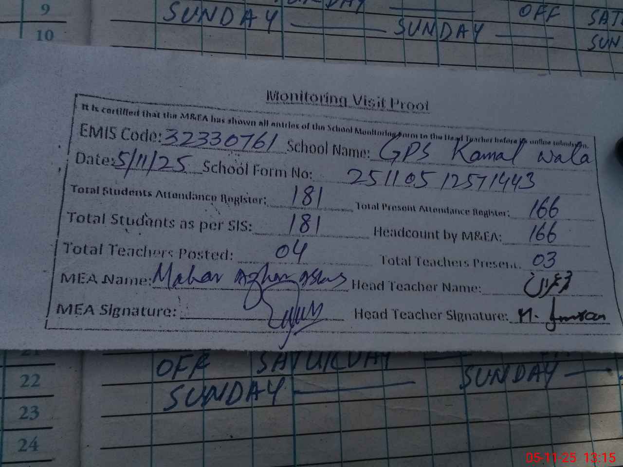 | EMIS Code: 32330761 | Name of School: GPS KAMAL WALA | |||