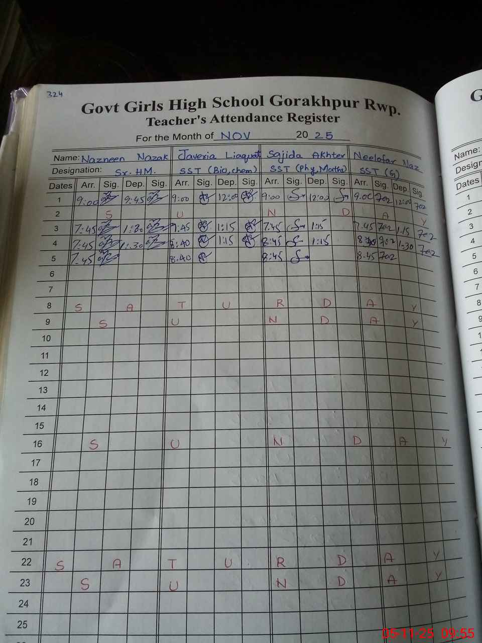 | CNIC | Full Name | Designation | R/C | Absence During Last Calender Month |