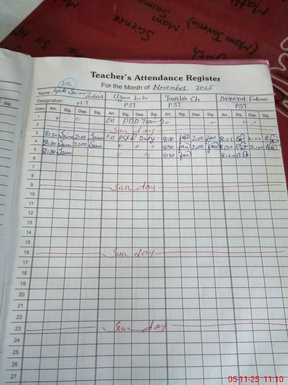 | Name: Sy**** Sa**** Zu**** Designation: (School Headmaster's/Headmistress's) PST Phone/Cell Number: 03**** |