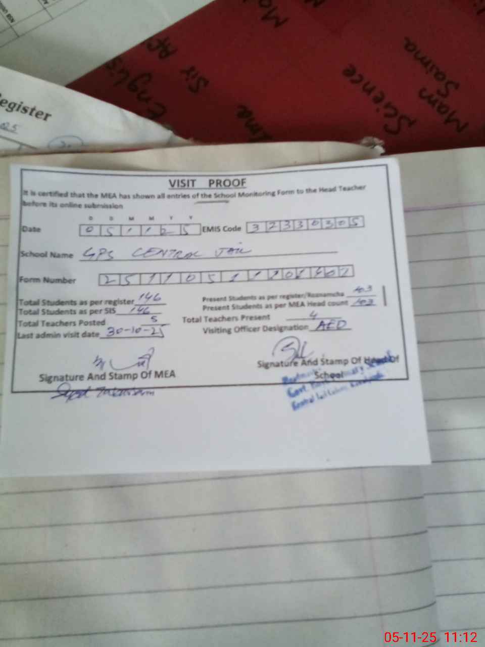 | EMIS Code: 37330305 | Name of School: GPS CENTRAL JAIL RWP | |||
