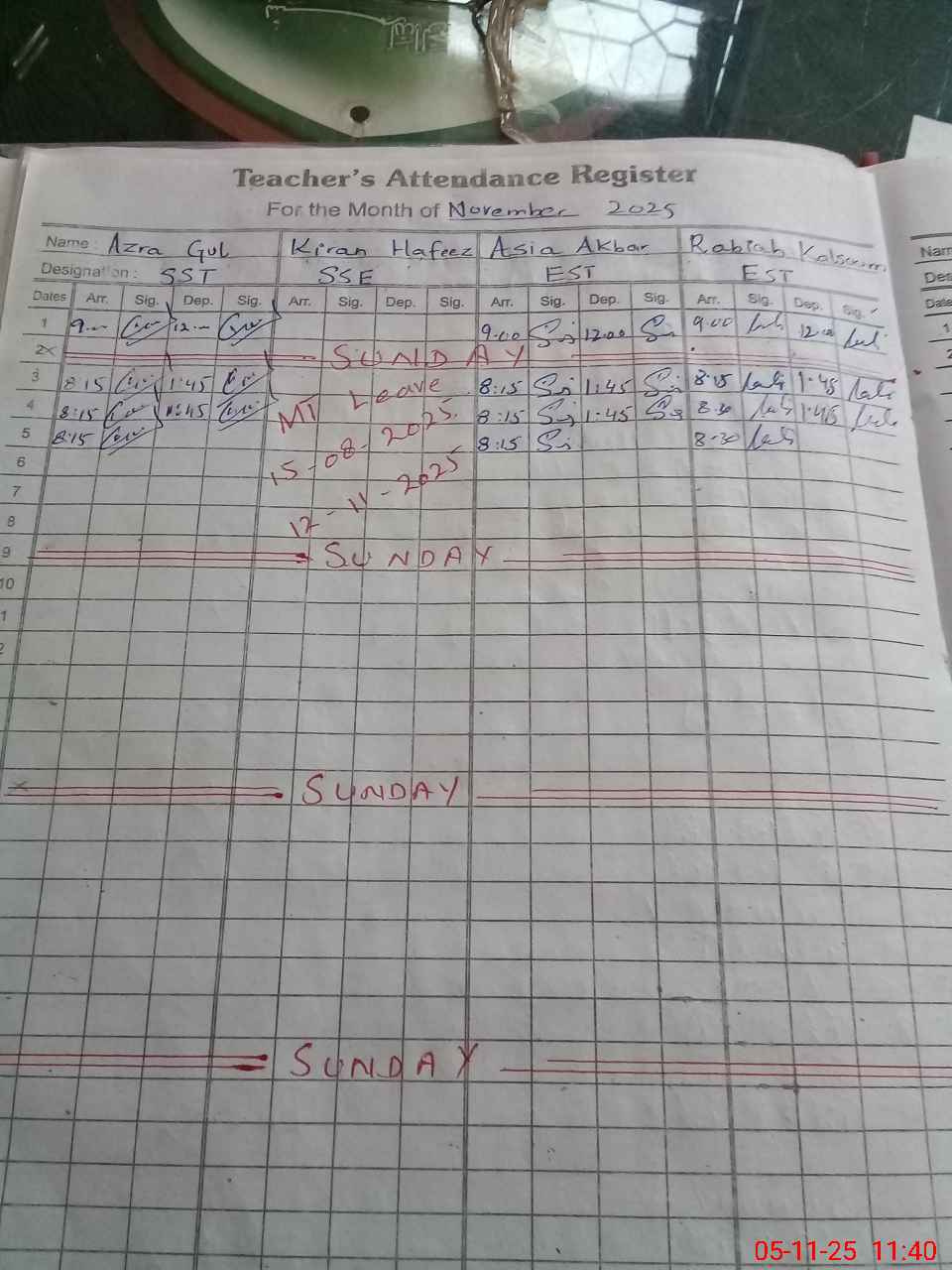 | 36**** | Ki**** Ha**** | ESE Urdu | Contract | 0 | 0 | 0 | 0 | 0 | 0 | 0 | 0 | 0 | Maternity |