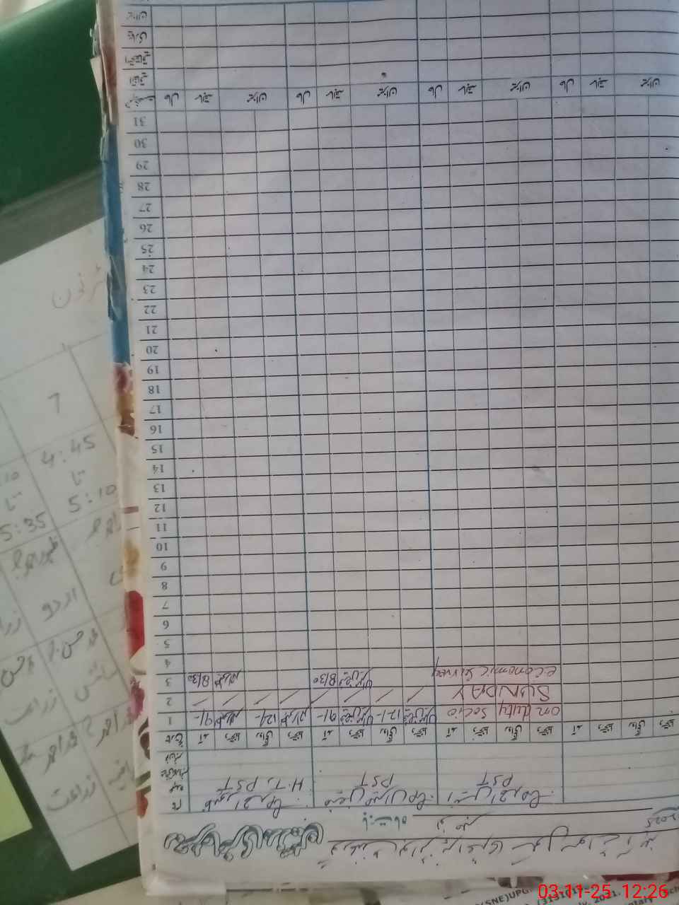 | CNIC | Full Name | Designation | R/C | Absence During Last Calender Month |