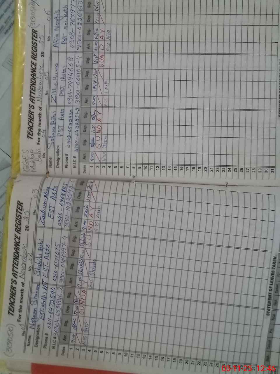 | 31**** | Za**** Iq**** | NAIB QASID | Regular | 3 | 0 | 0 | 0 | 0 | 0 | 0 | 0 | 3 | Casual |