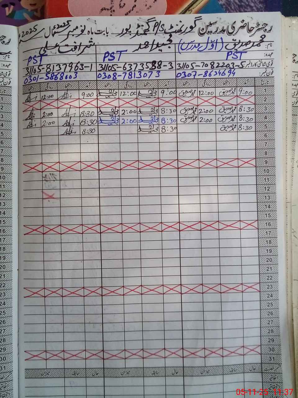 | Name: MU**** Sa**** Designation: (School Headmaster's/Headmistress's) PST Phone/Cell Number: 03**** |