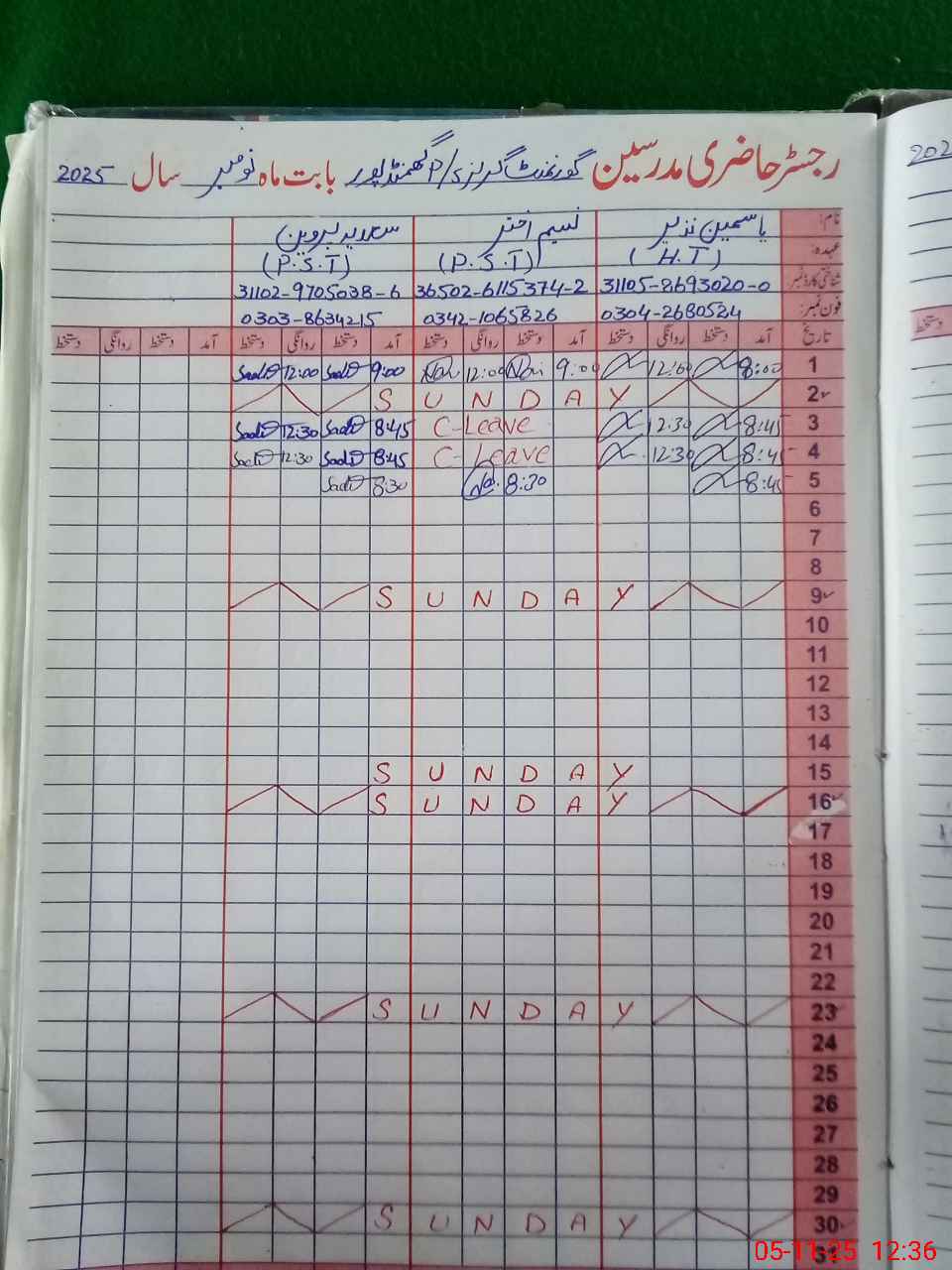 | CNIC | Full Name | Designation | R/C | Absence During Last Calender Month |