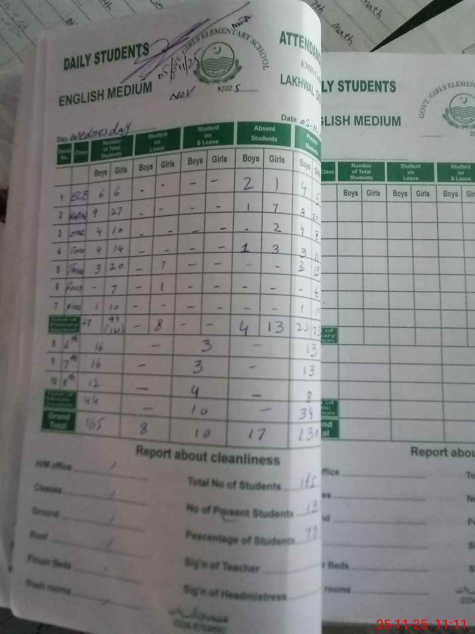 | No. of Students Present - Female | 5 | 0 | 20 | 8 | 11 | 13 | 6 | 10 | 13 | 13 | 8 | 107 | ||||