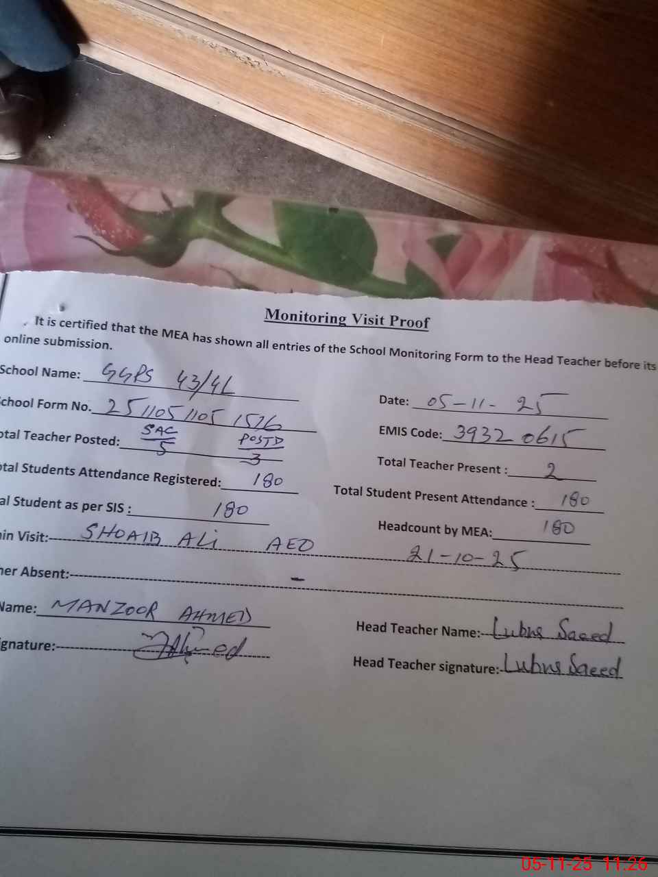| Certified that this School was Inspected by the Undersigned MEA/DMO Today and the Information Stated Above is as Per Record. | |||||