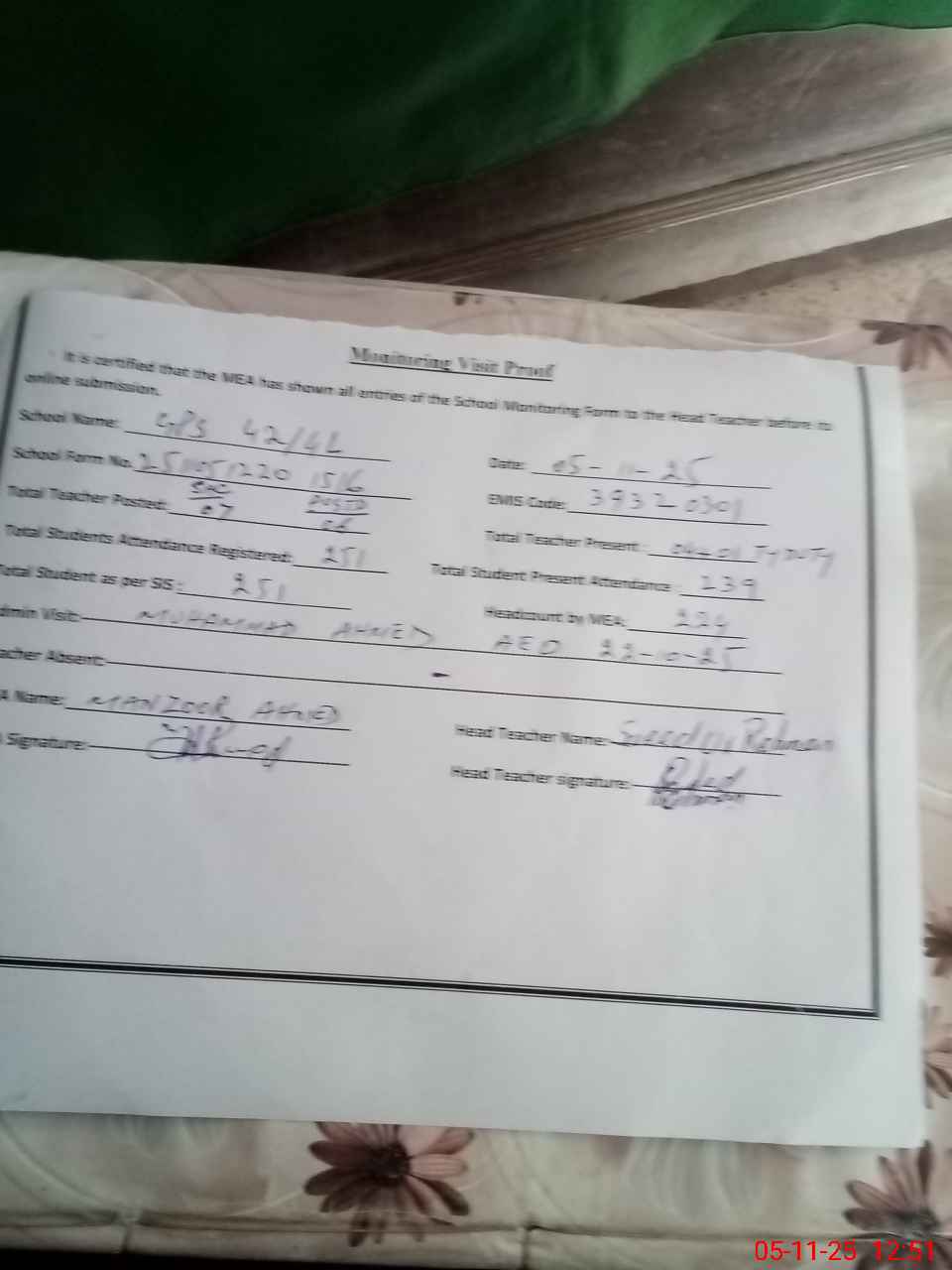 | Certified that this School was Inspected by the Undersigned MEA/DMO Today and the Information Stated Above is as Per Record. | |||||