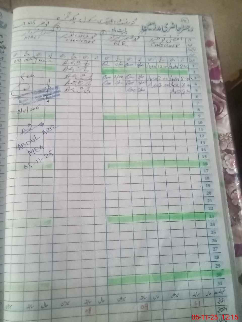 | CNIC | Full Name | Designation | R/C | Absence During Last Calender Month |
