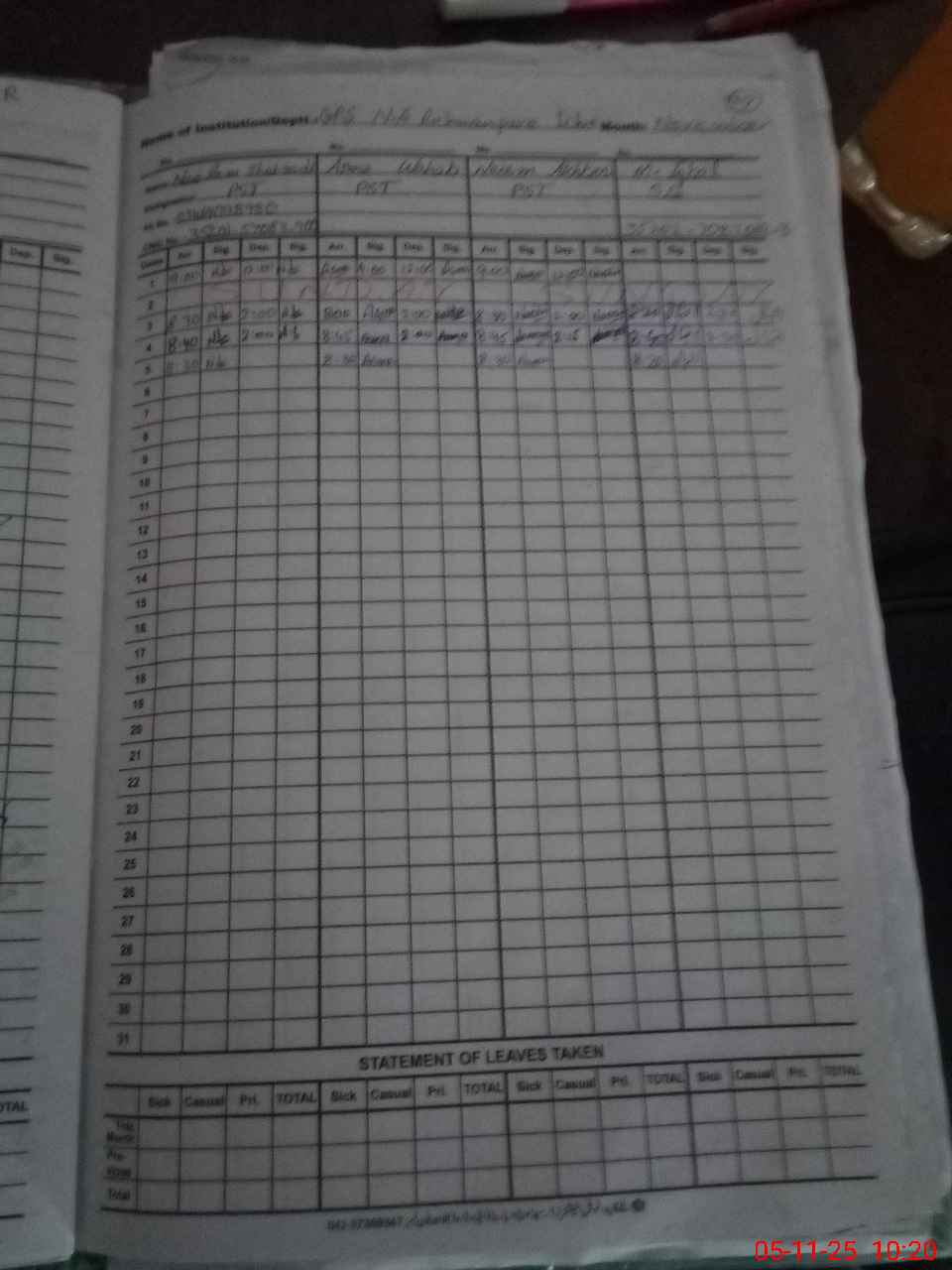 | CNIC | Full Name | Designation | R/C | Absence During Last Calender Month |
