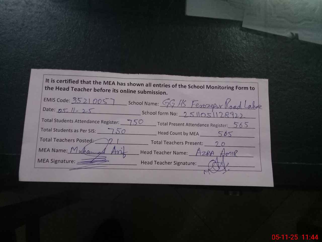 | EMIS Code: 35210057 | Name of School: GGHS FEROZE PUR ROAD | |||