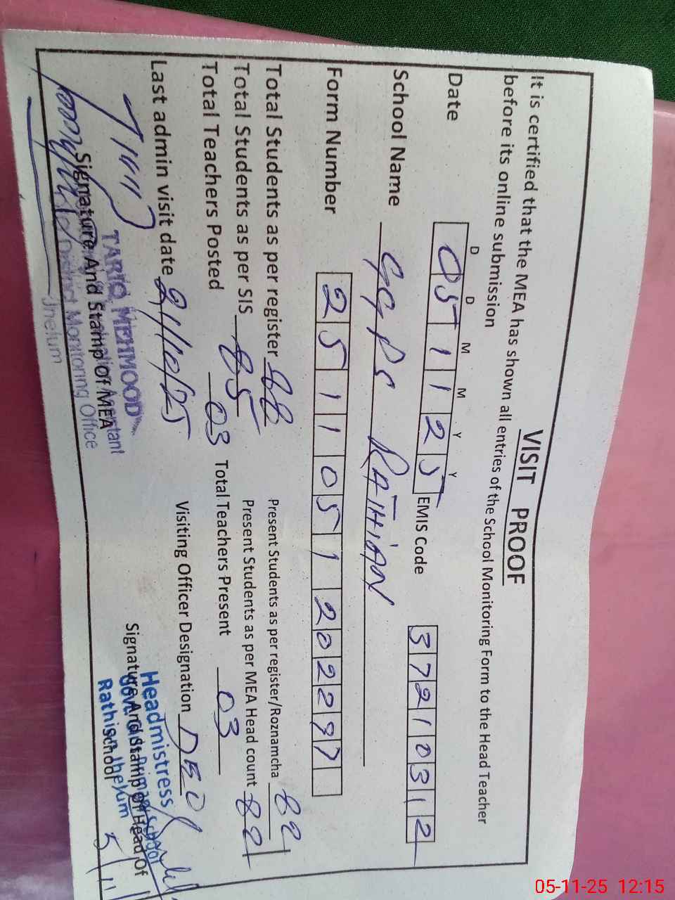 | EMIS Code: 37210312 | Name of School: GGPS RATHIAN | |||
