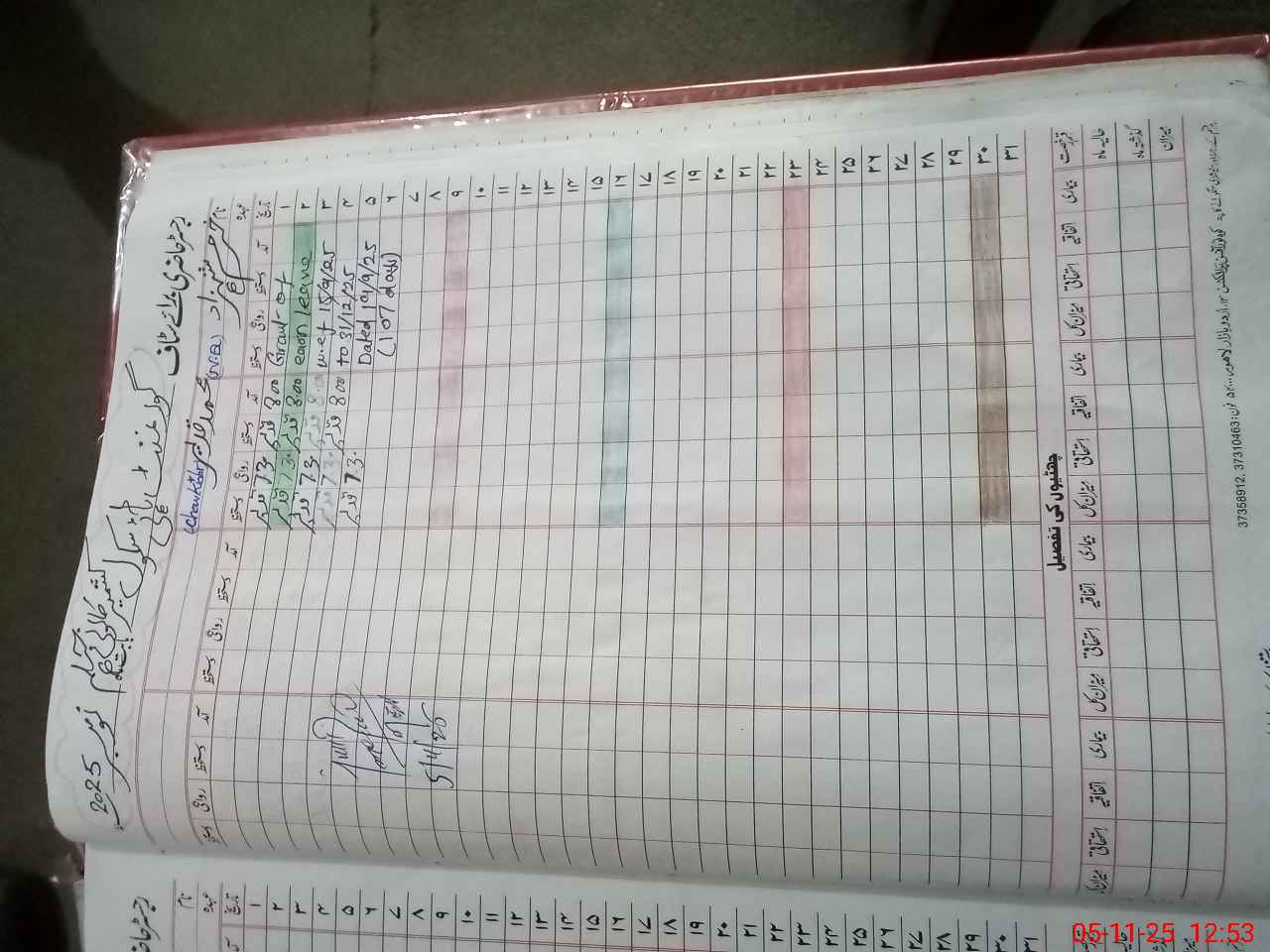 | CNIC | Full Name | Designation | R/C | Absence During Last Calender Month |