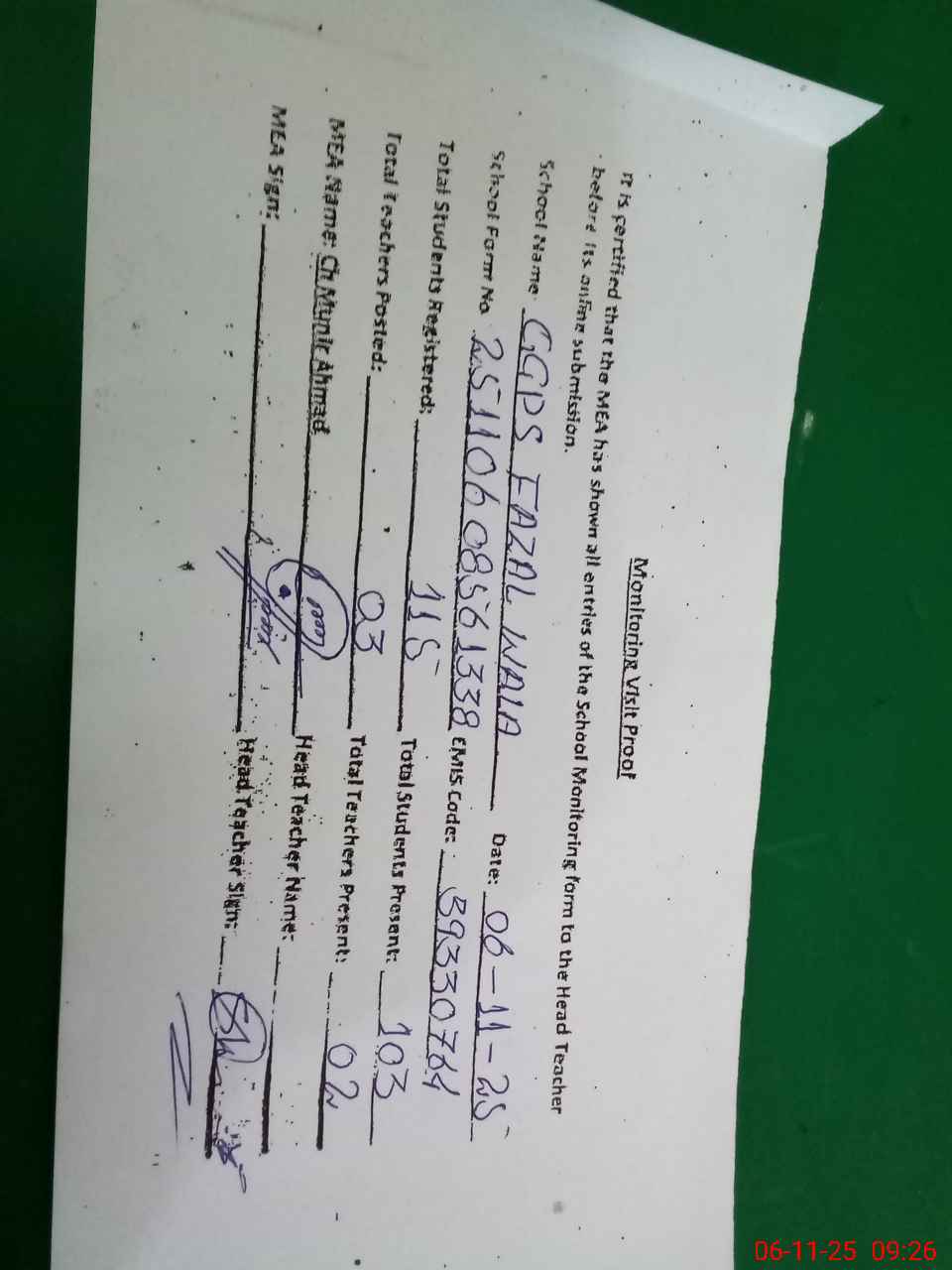 | EMIS Code: 39330764 | Name of School: GGPS CHAK FAZAL WALA | |||