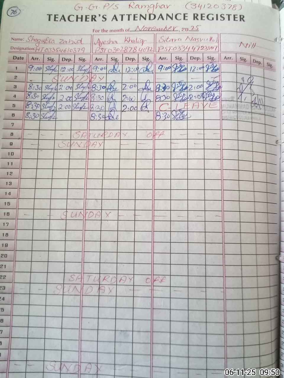 | Name: Sh**** Za**** Designation: (School Headmaster's/Headmistress's) PST/PTC/JV Phone/Cell Number: 03**** |