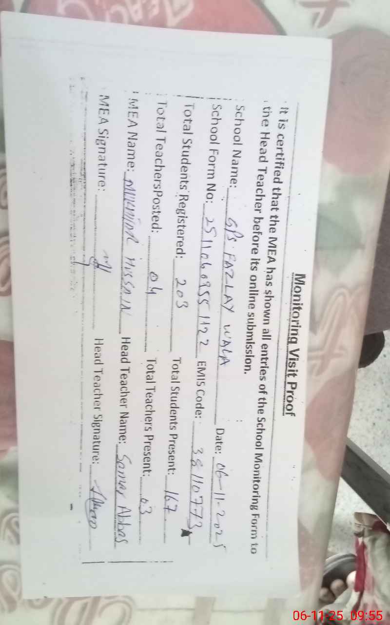 | EMIS Code: 38110773 | Name of School: GPS FAZLAY WALA | |||