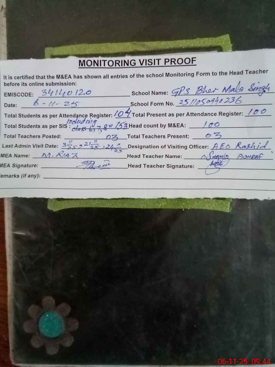 | EMIS Code: 34140120 | Name of School: GPS BHER MALA SINGH | |||