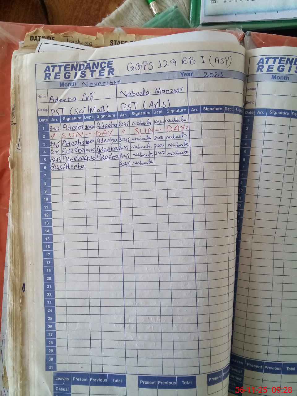 | CNIC | Full Name | Designation | R/C | Absence During Last Calender Month |