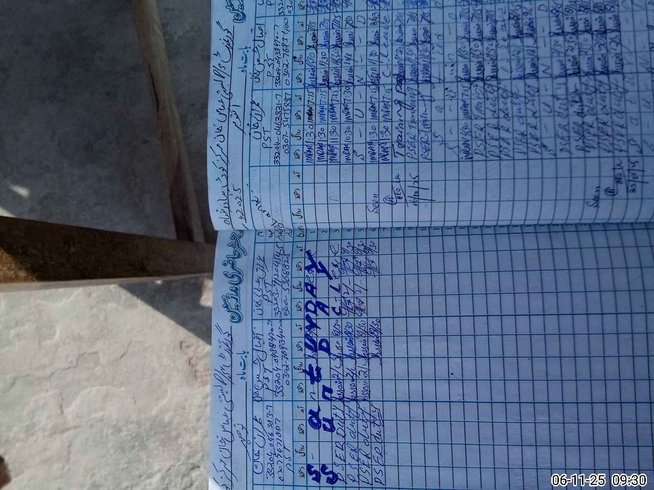 | CNIC | Full Name | Designation | R/C | Absence during last cal. month |