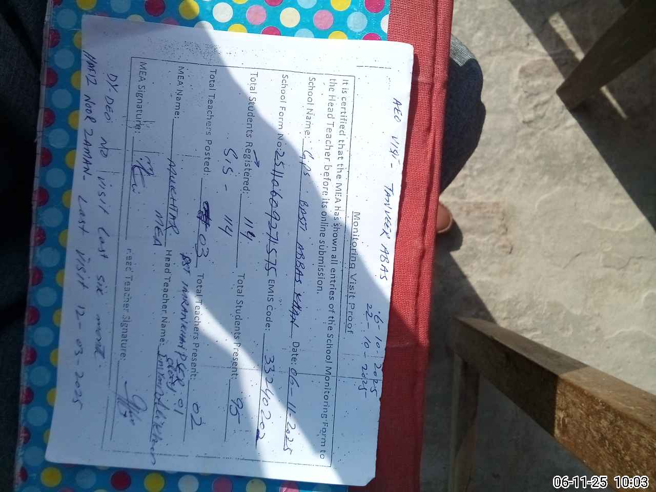 | EMIS Code: 33240202 | Name of School: GPS BASTI ABBASS KHAN | |||