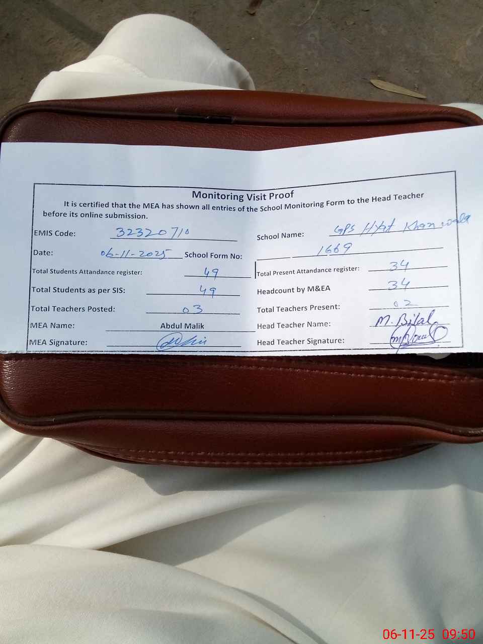 | EMIS Code: 32320710 | Name of School: GPS HAYAT KHAN WALA | |||