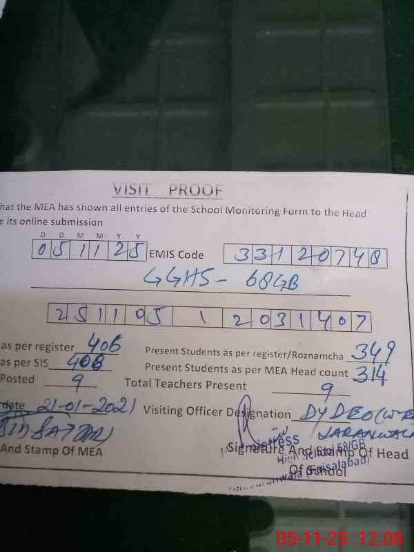 | EMIS Code: 33120748 | Name of School: GGHS CHAK 68 GB | |||