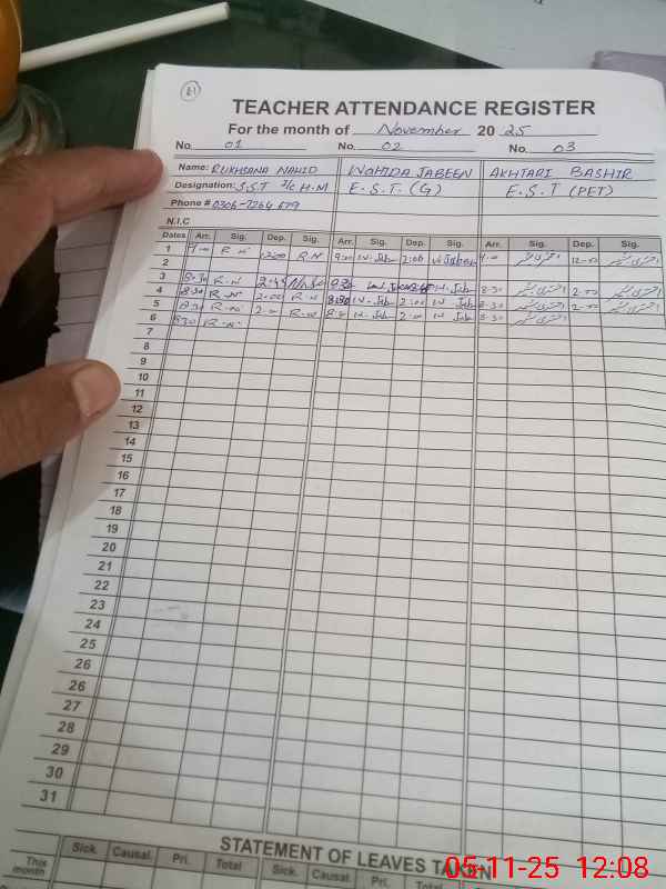 | Name: RU**** NA**** Designation: (School Headmaster's/Headmistress's) H M( SST ) Phone/Cell Number: 03**** |