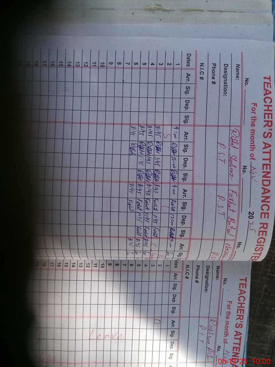 | Name: RI**** SH**** Designation: (School Headmaster's/Headmistress's) PST/PTC/JV Phone/Cell Number: 03**** |