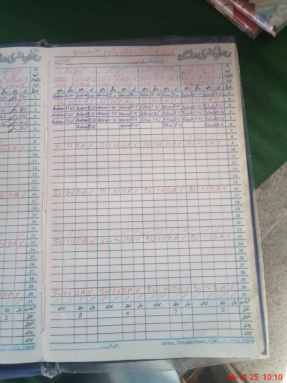 | CNIC | Full Name | Designation | R/C | Absence During Last Calender Month |