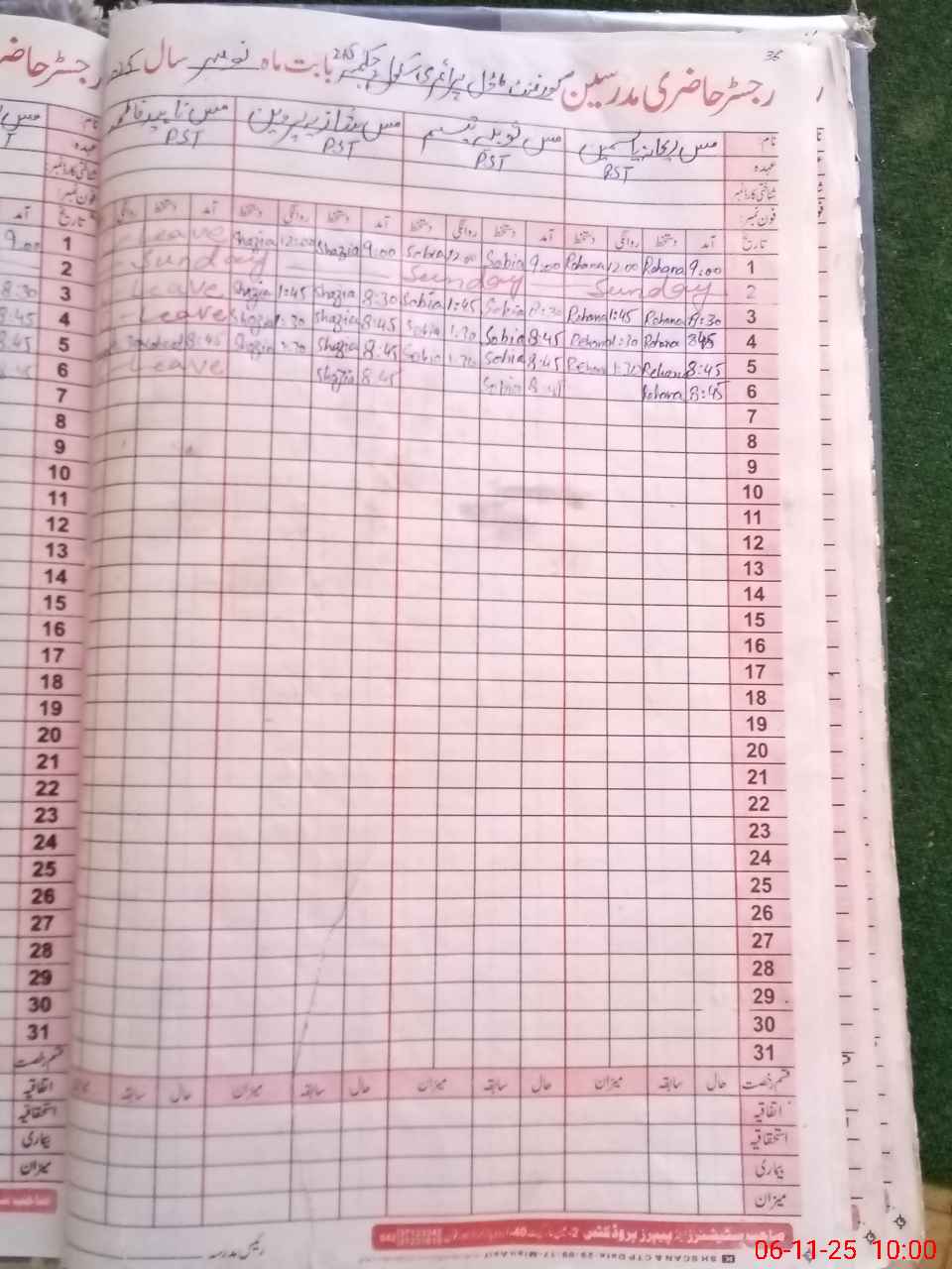 | CNIC | Full Name | Designation | R/C | Absence During Last Calender Month |