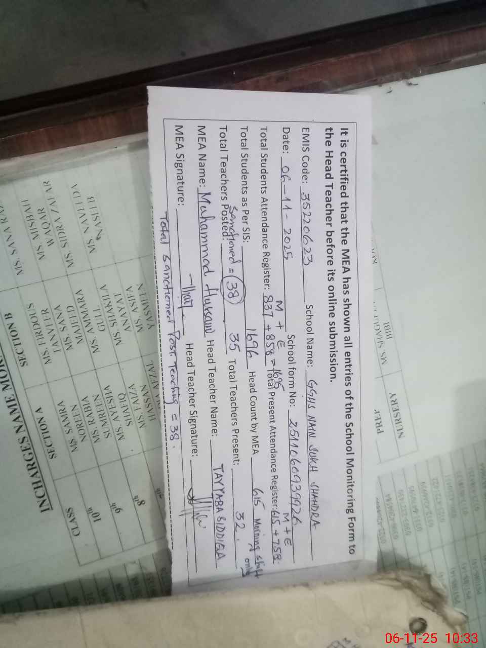 | EMIS Code: 35220623 | Name of School: GGHS NAIN SUKH SHAHDARA | |||