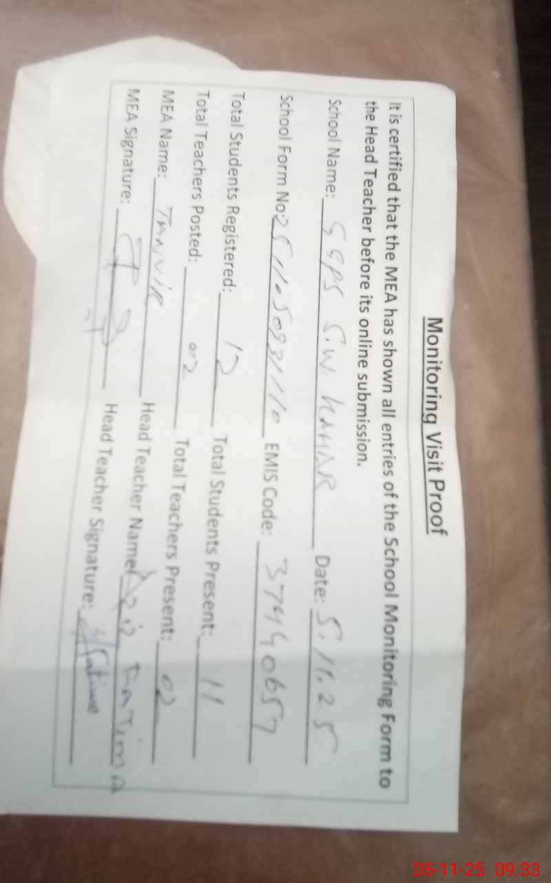 | EMIS Code: 37440657 | Name of School: GGPS SHER WALA KAHAR | |||