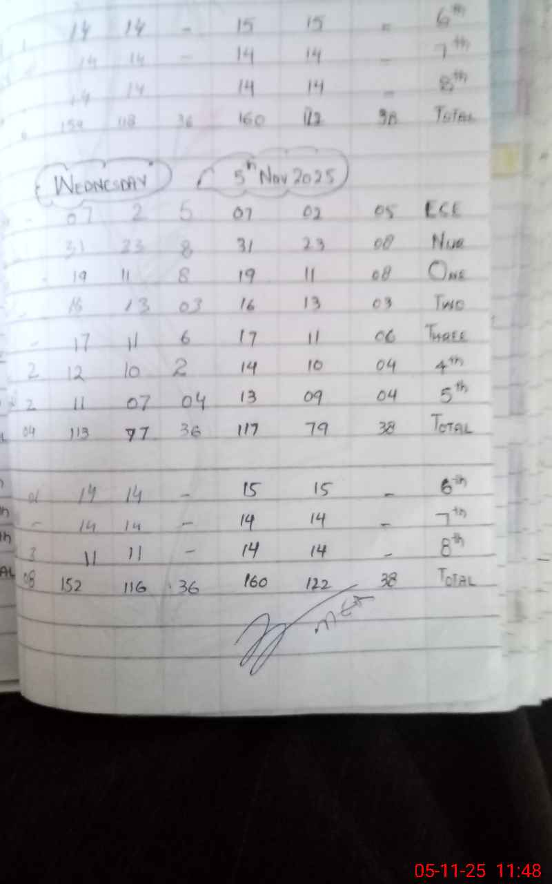| No. of Students Present - Male | 5 | 0 | 8 | 8 | 3 | 6 | 2 | 4 | 0 | 0 | 0 | 36 | ||||