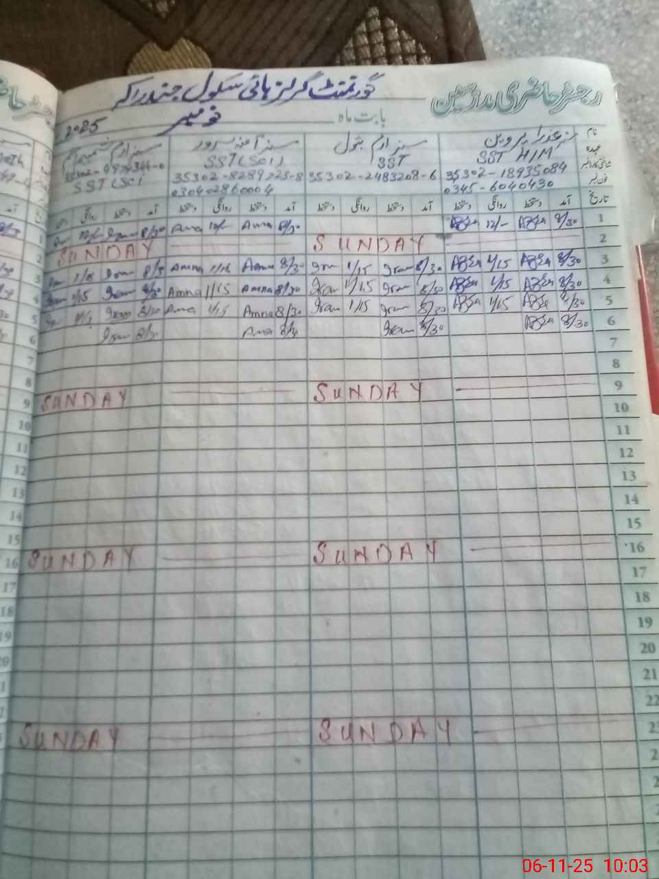 | Name: Az**** Pa**** Designation: (School Headmaster's/Headmistress's) SSE I/C Phone/Cell Number: 03**** |