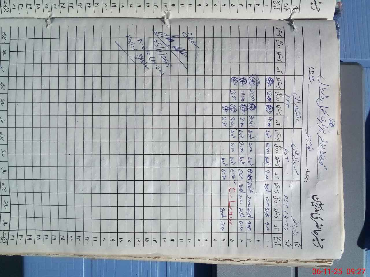 | CNIC | Full Name | Designation | R/C | Absence during last cal. month |