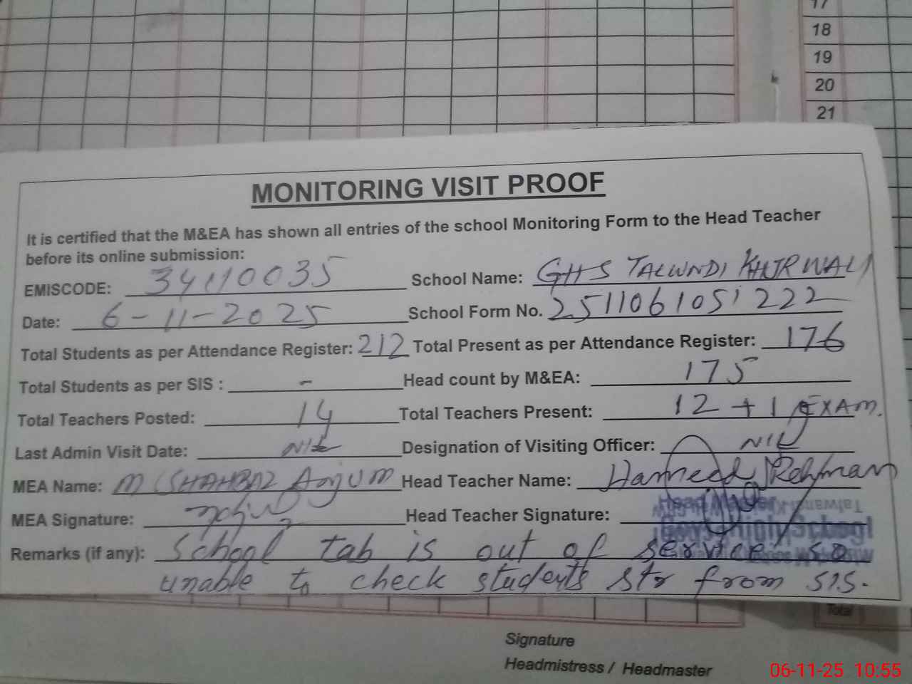 | EMIS Code: 34110035 | Name of School: GHS TALWANDI KHAJOOR WALI | |||
