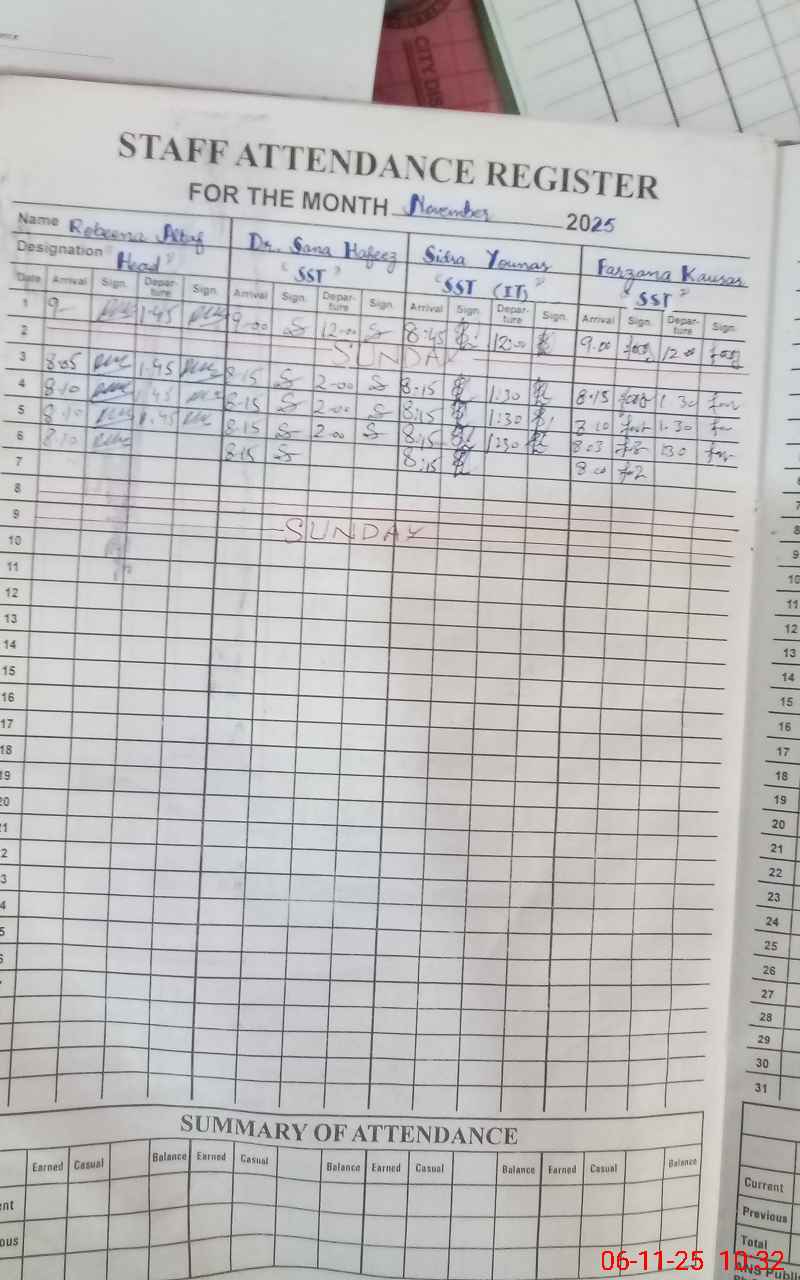 | Remarks (Use Separate Page if Required): Teacher Shahida transferred out since 20 march 2031 Her QR code is missing and still showing on teachers list This is double shift school moreover GGHS AZIZ I MILLAT also conducting in afternoon in the same building | |||||