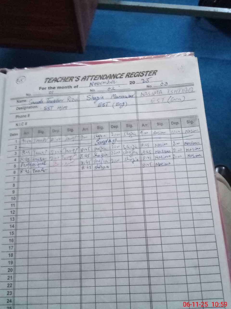 | CNIC | Full Name | Designation | R/C | Absence During Last Calender Month |