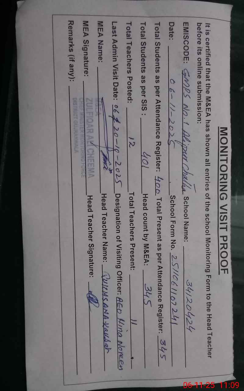 | EMIS Code: 34120424 | Name of School: GMPS ALI PUR CHATHA NO.1 | |||