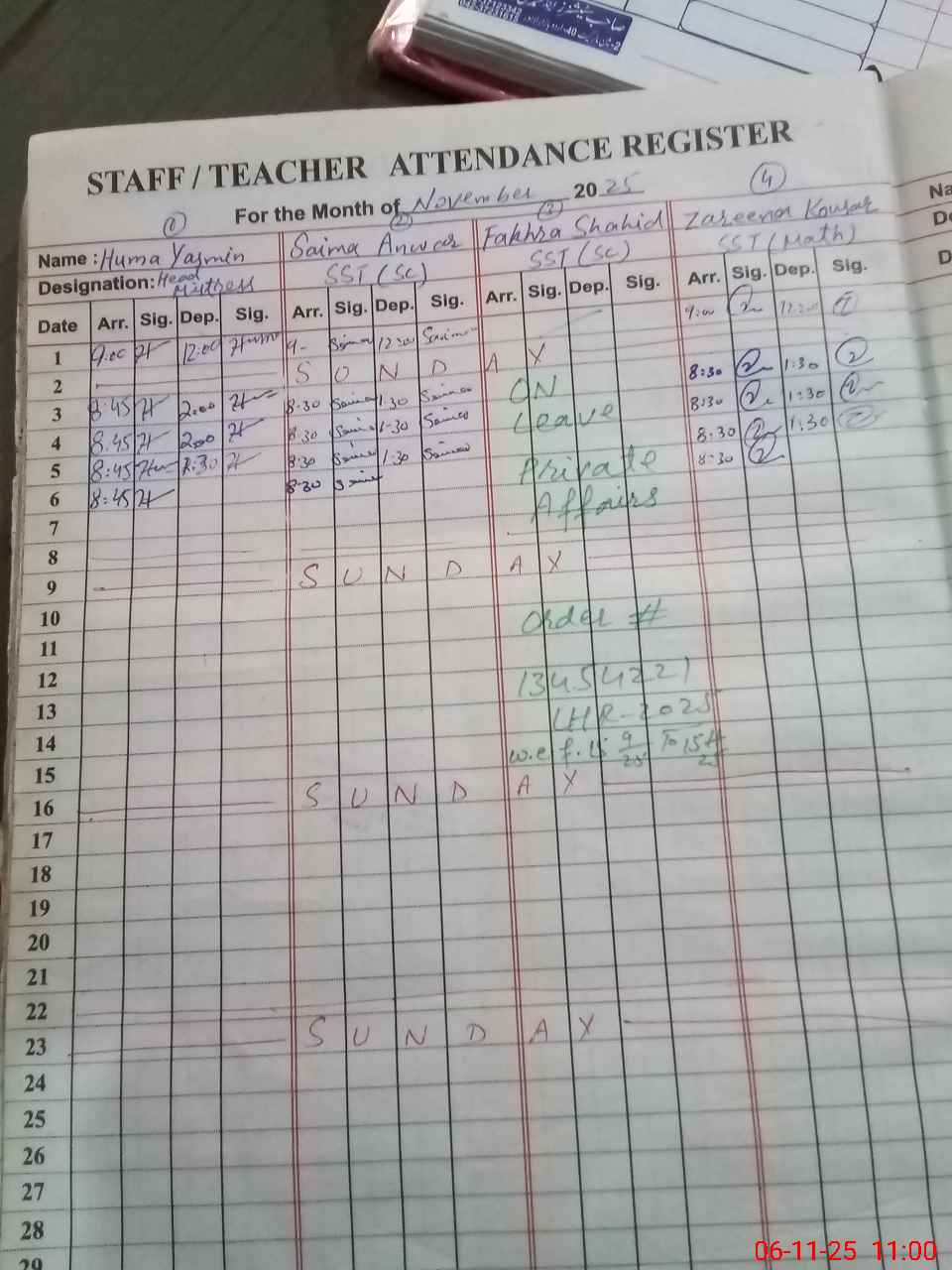| 32**** | Az**** Ba**** | ESE Arts | Regular | 0 | 0 | 0 | 0 | 0 | 0 | 0 | 0 | 0 | Exam Duty |