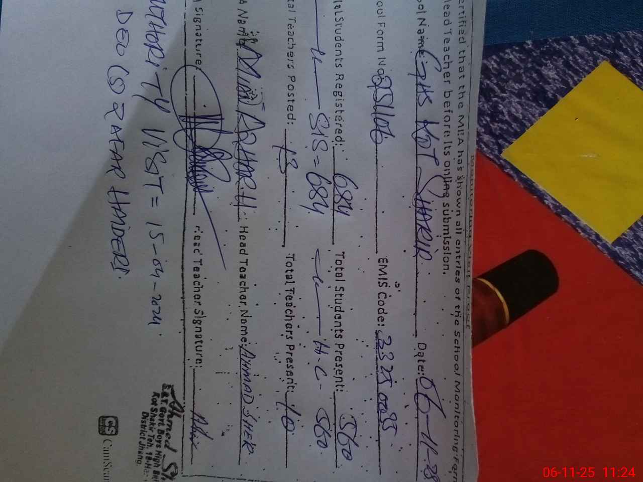 | Name: Sa**** Ab**** Designation: (School Headmaster's/Headmistress's) HM Phone/Cell Number: 03**** |