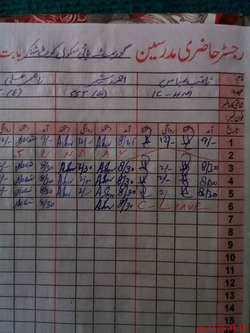 | 33**** | Mu**** Su**** | NAIB QASID | Regular | 1 | 0 | 0 | 0 | 0 | 0 | 0 | 0 | 1 | Casual |