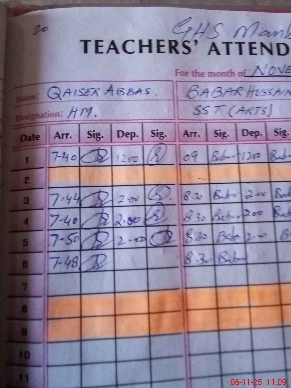 | Name: Ba**** Hu**** Designation: (School Headmaster's/Headmistress's) SST I/C H M Phone/Cell Number: 03**** |
